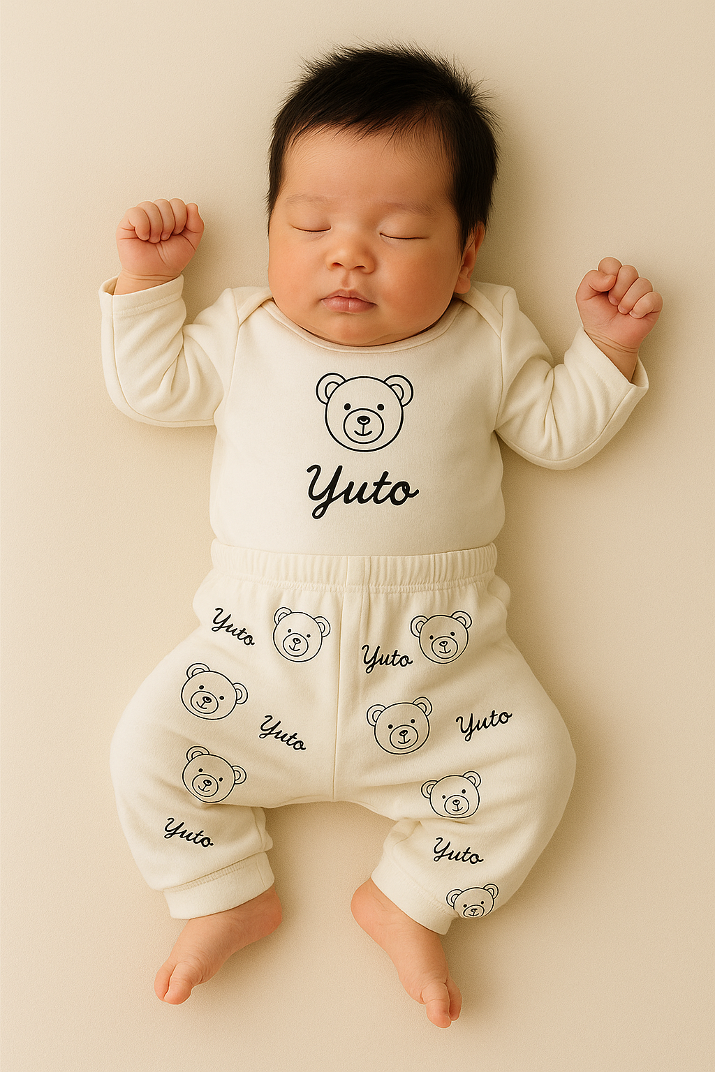 お名前入りベビー3点セット(カバーオール・帽子・スタイ)